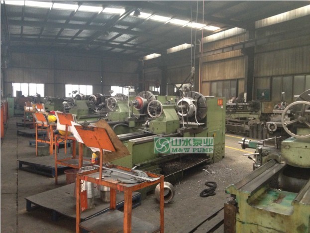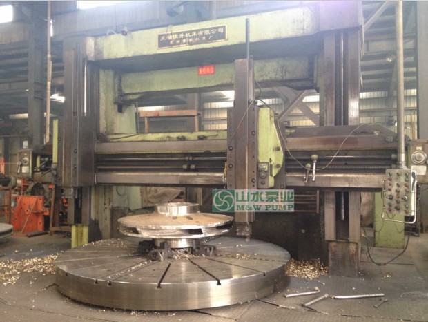 加工車間建筑面積約4800平方米,有立式車床、落地鏜床、磨床、數(shù)控龍門鏜銑床等各類大型設(shè)備??绍囅餍D(zhuǎn)直徑6300mm以內(nèi)各類零件和加工3500mm以內(nèi)的長軸,并可進(jìn)行3000mm以內(nèi)長度的深孔加工。有動(dòng)、靜平衡機(jī),可平衡2米的旋轉(zhuǎn)零件,被平衡件最重可達(dá)1600公斤,為水泵的安全、平穩(wěn)運(yùn)行提供了必要的保障。