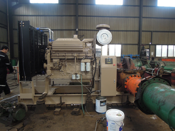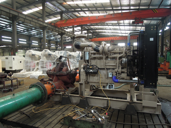 2013年3月我廠與美國(guó)客戶簽訂七臺(tái)XS300-470柴油機(jī)單級(jí)雙吸離心泵,此次簽訂的XS300-470型號(hào)單級(jí)雙吸離心泵是我廠根據(jù)客戶需要單獨(dú)開(kāi)發(fā)的型號(hào)。4月12日我廠測(cè)試站對(duì)整機(jī)開(kāi)始進(jìn)行測(cè)試,隨著配套常用功率507KW柴油機(jī)的啟動(dòng),測(cè)試站工作人員開(kāi)始對(duì)各項(xiàng)參數(shù)進(jìn)行測(cè)試,測(cè)試項(xiàng)目包括:性能測(cè)試、出水口壓力、進(jìn)水口壓力、氣蝕余量、震動(dòng)測(cè)試、柴油機(jī)噪聲測(cè)試、軸功率、工頻、轉(zhuǎn)速等運(yùn)行測(cè)試。經(jīng)過(guò)兩小時(shí)的連續(xù)運(yùn)轉(zhuǎn)測(cè)試,XS300-470柴油機(jī)單級(jí)雙吸離心泵運(yùn)行工況正常,各項(xiàng)指標(biāo)符合設(shè)計(jì)要求。