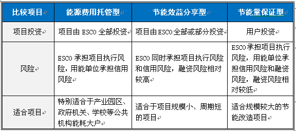 合同能源管理是當前節(jié)能服務產業(yè)的主導模式,它有三種主要類型,即節(jié)能效益分享型、節(jié)能量保證型、能源費用托管型。
