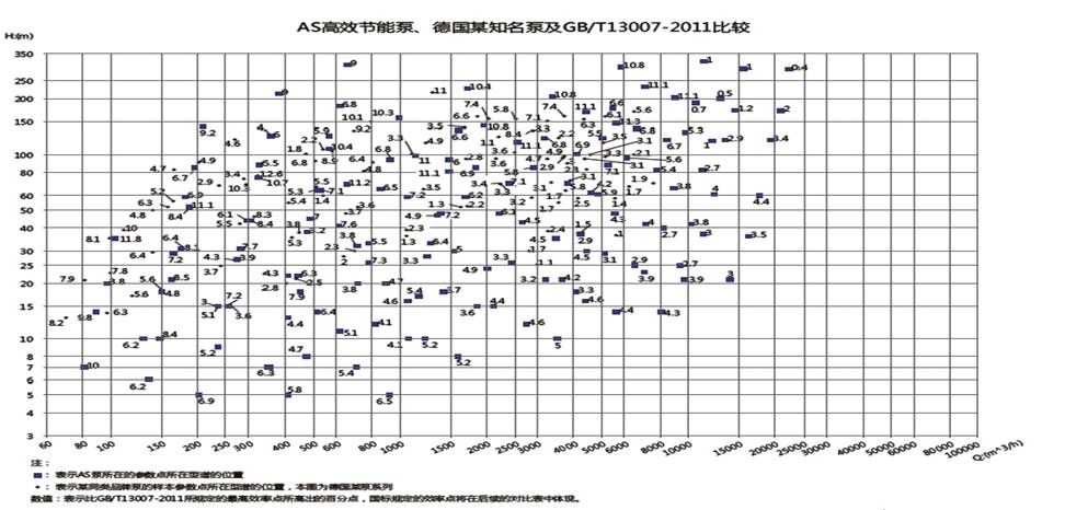 為進一步驗證該系列產(chǎn)品的超高效率,選取了德國、奧地利、丹麥最知名泵類品牌的同類產(chǎn)品在國家水泵測試中心進行了專業(yè)權威的效率對比實驗,測試結果均高于對比產(chǎn)品。經(jīng)機械工業(yè)排灌機械產(chǎn)品質(zhì)量檢測中心檢測,AS系列泵效率高,高效范圍寬,性能優(yōu)于國家標準要求,試驗效率高于國家標準的規(guī)定值1~12個百分點,效率指標高于國內(nèi)外同類產(chǎn)品,綜合技術指標居國際先進水平。