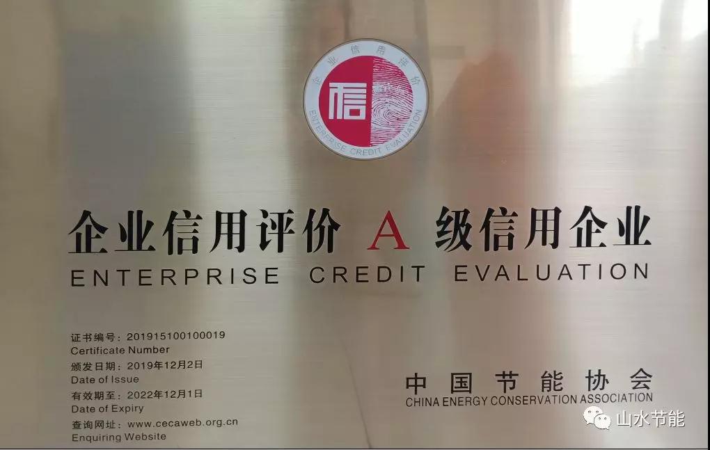 喜訊 | 山水節(jié)能榮獲中國節(jié)能行業(yè)A級企業(yè)信用等級榮譽