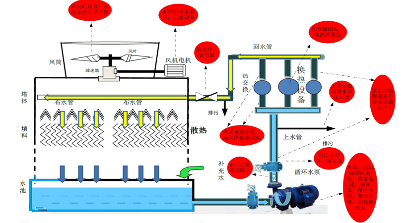 冷卻塔風(fēng)機(jī)系統(tǒng)問題:實行工頻控制,未對風(fēng)機(jī)系統(tǒng)進(jìn)行有效調(diào)節(jié)。
