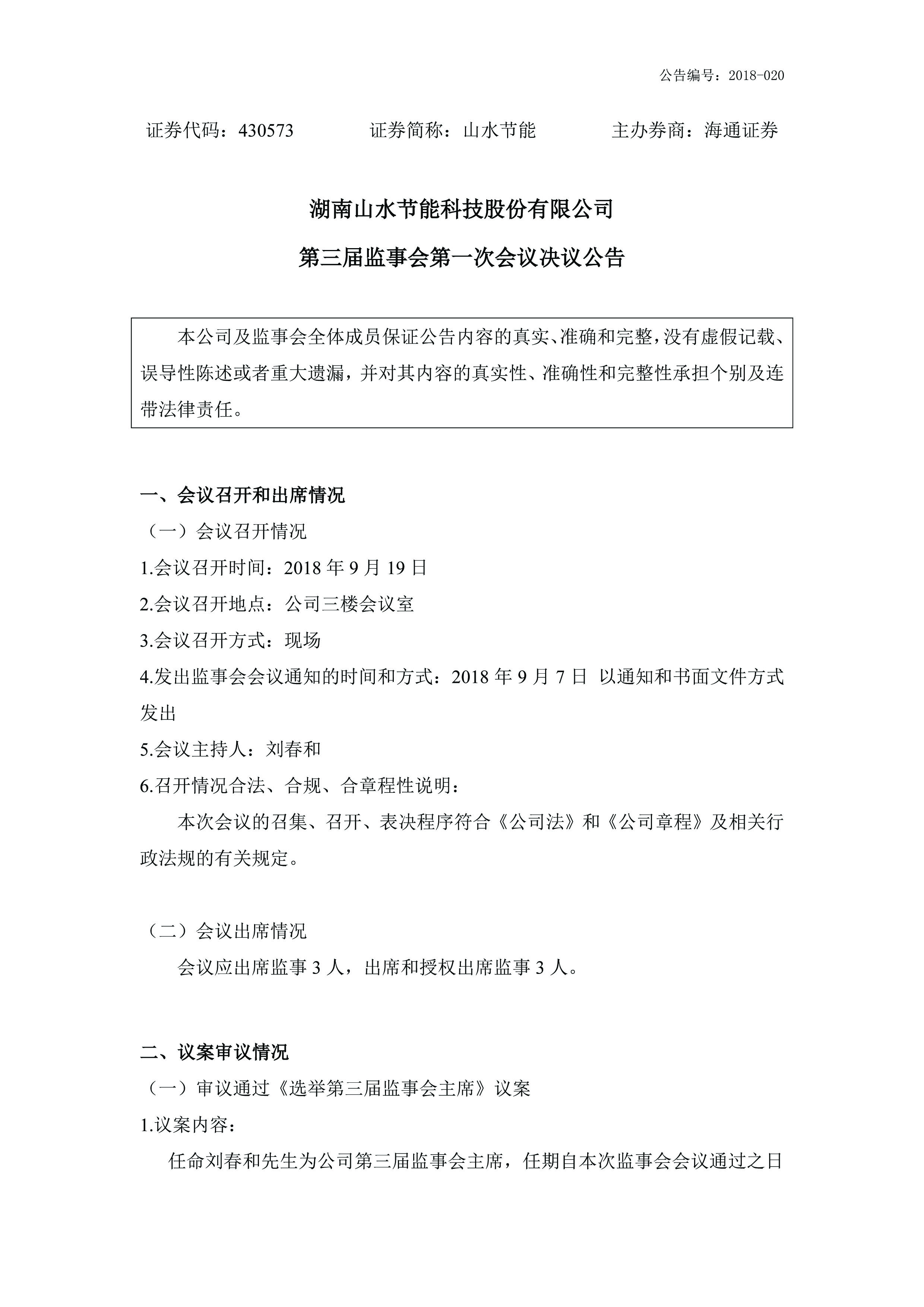第三次董事長第一次會議決議公告